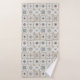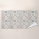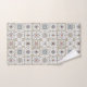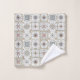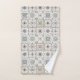 Bath towels with a series of nine (9) different Spanish-style tiles in neutral colored, mosaic pattern.
