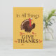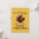 Celebra y da gracias este Día de Acción de Gracias con "En Todas las Cosas Dar Gracias", y un diseño de pavo de Acción de Gracias lindo. El fondo dorado amarillo colorido complementa los colores de las fiestas de otoño y las hojas.