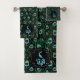 Juego de toallas de pavo real vibrante y audaz. Este diseño es totalmente personalizable y se puede cambiar el color de fondo del negro al blanco para obtener un aspecto completamente diferente. Productos de coordinación disponibles.