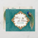 Esta elegante y sofisticada invitación tiene un atractivo vintage rico y elegante. Creado con una selección de elementos de arte vintage que han sido compilados en un diseño fresco y nuevo por Audrey Jeanne Roberts. Los giros de caligrafía spenceriana dan una calidad hermosa y atemporal a este delicado fondo. Un par de pavos reales regios se sientan junto a un marco dorado tallado y dorado. El color de fondo es completamente personalizable para que coincida con los colores de su boda. He utilizado dos colores en esta invitación, pero la parte delantera y trasera también podrían ser del mismo color - ¡es su elección! Cada producto mostrado se puede crear en cualquier color que desee. SELECCIÓN DE PAPEL: Se muestra aquí con Champagne Ice metálico. Este papel es MAGNÍFICO, tiene un acabado suave y perlado cremoso que da una elegancia increíble a su presentación. Esto también se vería excelente con los papeles premium de fieltro, lino, Ice metálico o otros, así como con el papel estándar en el que Zazzle imprime. TAMBIÉN PODRÍAS DISFRUTAR: INVITACIONES DE BODA: SOBRES PERSONALIZADOS A JUEGO: TARJETAS DE RESPUESTA: INVITACIONES DE RECEPCIÓN: ANUNCIOS DE GUARDAR LA FECHA: FRANQUEO: GRÁFICOS