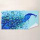 Toalla colocada en un fantástico pavo real de cola lujosa, en tonos turquesa y azul cobalto, sobre un suave fondo acuático
