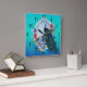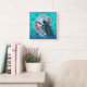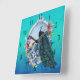 El pavo real y el reloj de pared cuadrado floral en el azul mezclado con las flores delicadas y los azules claros que enmarcan el pájaro se sienta encendido