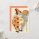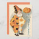 Dé un paseo junto a tu truco esta Halloween. Esta impresión representa a un lindo payaso que mira a una sonriente linterna de jack o'.