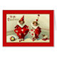 Tarjeta de saludo de 5" x 7" con una imagen vintage de San Valentín de dos niños vestidos con trajes de payaso, uno con corazones y otro con arcos. Uno tiene un juguete a su lado, el otro una pelota. Fondo rojo. El sentimiento externo dice "A mi San Valentín". El sentimiento interno del personalizable dice "Haciendo recuerdos de nosotros". Ver la caja de favores coincidente, la gran bolsa de regalo y la etiqueta. Ver toda la colección de tarjetas de felicitación de San Valentín en INVITES | Sección Invitaciones y Tarjetas.