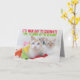 El diseño presenta dos adorables gatitos disfrazados de payasos de cumpleaños con trapos coloridos. Mensaje frontal - "Es tu día para celebrar el momento de traer a los payasos" Mensaje interior - "Feliz cumpleaños" Haga clic en el botón Personalizar para mensajes personalizares.