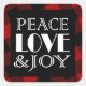 Añade una dosis audaz de color a los sobres de tus Navidades con este sello para sobres de paz, amor y alegría. Comienza con un fondo rojo y negro de chapa búfala. Paz Amor y Alegría y escrito en negrita tipografía blanca y colocado en el centro de un cuadrado negro.