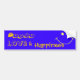 Este pegatina del bumber tiene una cara en ella y dice, "paz, amor, y felicidad." en ella.
