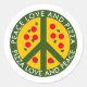 Paz Amor y Pizza divertida fiesta personalizado a favor del Pegatina Redondo clásico. Señal de símbolo de paz con porciones de pizzas. Haz que tu propio personalizado de fiesta suministre para el cumpleaños del niño, boda, reunión, reunión, celebración, barbacoa y más. Añade tu propio texto personalizado. Cocina italiana de corte humorístico. También es ideal para cocinero, cocinero o pizzería en el restaurante pizzería.