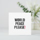 La paz mundial, por favor, un exclamación de texto en blanco, negro y rojo, una tarjeta de protesta contra la guerra moderna y minimalista.