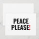 Paz, por favor, texto rojo blanco contra la tarjet