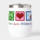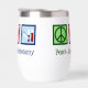 Un lindo regalo flebotomista con un signo de paz, corazón y viales de sangre. Tumbler de vino de Peace Love Phlebotomy.