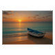 Bring serenity into your space with this stunning poster featuring a peaceful golden sunset and a small boat resting quietly on the beach. The calm sea reflects the last light of day like a mirror, creating a moment of stillness and timeless beauty.