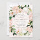 El diseño presenta una estampación de color con elementos florales en tonos melocotón y crema sobre hojas verdes e hidrangeas con tulipanes en un fondo acuático de melocotón claro. ¡Genial para las celebraciones de sus bodas!