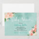 Invitación de Baby Shower con flores de melocotón y fondo verde azulado acuarela. Esta invitación es neutral en cuanto a género, lo que se adapta a cualquier tipo de ducha de bebé, ya sea un chica, un niño o una sorpresa Fácil de editar el nombre, detalles y registro