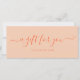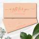 Sencillo y elegante certificado de regalo de melocotón con guión minimalista. Este elegante certificado de regalo de guión se ajusta perfectamente a un sobre comercial estándar #10. Perfecto para su marca y negocio.