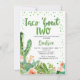 Peach Green Taco Bout Two Birthday Invitation Sweet taco acerca de dos invitaciones de segundo cumpleaños con cactus de flores de color melocotón y suculentos. En esta fiesta temática de 2º cumpleaños también hay algunos puntos de color verde y acuarela verde, y es ideal para una fiesta de segundo cumpleaños de un chica.