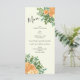 Peach & Ivory Peony & Rosa Floral Boda Menú