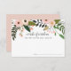 Elegantes tarjetas de consejo floral permiten a los invitados de las duchas de novias compartir sus palabras favoritas de sabiduría para que la novia esté. Las tarjetas cuentan con un borde superior de flores rosa y melocotón decoradas con exuberante vegetación botánica. "Palabras de sabiduría para la futura Sra. [Nombre]" aparece en la escritura moderna de caligrafía escrita a mano.