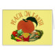 Peach on Earth, Goodwill to all Fruits and Vegetables. Ajá, todos estos años pensaste que era "Paz en la Tierra", etc. Bien, eso también es una cosa. Pero si cambias la "h" a una "e", tienes una manera totalmente alternativa, puntiaguda de mandar o decir un saludo de vacaciones para Navidades que es especialmente para vegetarianos, veganos y todos los amantes de frutas y verduras sanas. Lo que es sólo sobre todos, si no cuentas carne, ¿verdad? Así que aquí hay una bonita tarjeta de felicitación de vacaciones con el deseo de vacaciones en la parte delantera, ilustrada de manera colorida por dicho melocotón y verduras, y "Buena voluntad para todas las frutas y verduras" en el interior, en una fuente divertida y encantadora, acentuada con un corazón y un florecimiento. ¡Felices Fiestas Inclusivas!