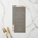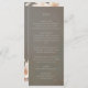 Trae elegancia intemporal a tu recepción de bodas con esta tarjeta de menú de diseño elegante en un suave tono marrón. Los delicados detalles florales y los tonos neutros crean un ambiente cálido y acogedor, lo que lo convierte en el lugar perfecto para disfrutar de un ambiente refinado y romántico.