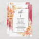 Ayude a sus huéspedes a encontrar su mesa con esta elegante y moderna tarjeta de asiento con nombres de huéspedes con exquisitos melocotones y crema floral y manchas de color burdeos. Tarjetas de doble cara para que los huéspedes puedan ver sus nombres desde ambos lados, delante o detrás de ellos en las pantallas colgantes. Espacio despejado alrededor que le da la libertad de usar clips o agujeros para las pantallas colgantes, o usar soporte de mesa/marco. Marco con delicados detalles florales en una hermosa mezcla de melocotón, naranja, rosa rubor, rosa polvoriento y champán crema. Detalles modernos de caligrafía escrita a mano. Varias opciones de color. Tener todos los números de tabla en el mismo color o mezclar colores según el tema de color del evento. Parte de nuestra colección "Peach Floral Delight with Burgundy" con una variedad de productos de coordinación disponibles, incluyendo tarjetas de número de mesa y menús. Visita toda la colección en: https://www.zazzle.com/collections/peach_floral_delight_with_burgundy-119085236838576621