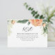 Cree una tarjeta RSVP de boda personalizada que complemente perfectamente su gran día con nuestro elegante diseño floral de melocotón y la minimalista tarjeta de respuesta boda azul. Este RSVP botánico cuenta con un código QR para acceder fácilmente a su sitio web boda. Ya sea que esté planeando una celebración de primavera, verano, invierno o otoño, esta versátil plantilla de tarjeta de respuesta muestra tipografía moderna y elegancia intemporal. Perfecto para añadir un toque personal a sus invitaciones, esta plantilla garantiza que sus huéspedes puedan responder con estilo.