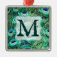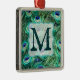 Pájaros de pavo real Verde azulados de color turquesa de época victoriano Monograma navideño inicial Personalizado