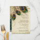 COLOR PALETTE: crema, bronceado, crema, azul real, verde y óxido. DISEÑO: Tarjeta de menú de cena coincidente. Los nombres de la novia y del novio y la fecha del boda están al frente de este diseño. Esta antigua colección de bodas de inspiración vintage tiene un completo conjunto de productos y se puede crear en varios colores. Si desea que coincida con su boda, háganoslo saber por correo electrónico y estaremos encantados de asistirle. Este diseño consiste en un pavo real majestuoso sobre un elemento de arte vintage de rama arbórea, con tres plumas de pavo real y sobre un grabado de ángel, remolinos, letra antigua, encaje pintado a mano sobre pergamino y un hermoso patrón original de damasco de arte. El color de fondo se puede cambiar para que coincida con el de su boda.