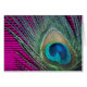 Fotografía de una pluma de pavo real brillante. El fondo rosa claro con las líneas oscuras crea un efecto muy agradable.