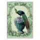 La tarjeta de bonito vintage cuenta con un fondo verde pastel de remolinos y un borde floral con un pavo real encaramado en una urna de flores de Hydrangea. Tarjeta dentro que coincide con el fondo verde suave.