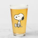 Esta obra de arte de Peanuts muestra a Snoopy sentado en el fondo de tiras cómicas Charles M. Schulz en blanco y negro.