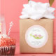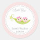 Pegatina redondo para la ducha de bebé con guisantes en un diseño de vaina.