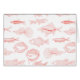 Patrón vectorial dibujado a mano con varios peces en color de coral vivo y fondo blanco.