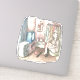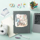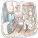 PEGATINA さやしくじ 衣類のかけてある部屋の座椅子に座ってテレビを見ながら靴下をはいている女性のイラスト