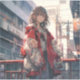 Pegatina 橋に佇む赤い服の娘シール Seal|東京娘 GenerativeAI