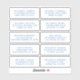 10 Boda de Fiesta de dirección de invitado individual Pegatinas de guiones azules de medianoche cuenta con 10 pegatinas con su nombre de invitado y dirección individual en cada pegatina de color azul de medianoche sobre un fondo blanco. También es perfecto para Navidades y tarjetas de vacaciones, invitaciones a fiestas, tarjetas de agradecimiento y correos de oficina. Simplemente edite el texto en los cuadros de texto proporcionados. Ver Evco Studio para otros colores y opciones https://www.zazzle.com/store/evcostudio