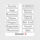 Pegatina 13 nombres de hierbas transparentes editables para