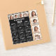 A calendar with 4 photos plus an additional 4 square photo stickers as a bonus. A simple black background with white type. For best results, crop photos into squares before uploading.