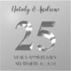 Feliz aniversario de bodas de plata. 25 años juntos. Etiqueta metálica plateada.