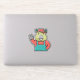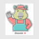 Pegatina A Cartoon Funny Red Beaver Waves Left Hand.