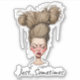Solo, a veces te sientes frustrado por este mundo estresante. Divertida y desordenada mujer con triste cara triste y estresada.