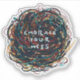 Un torbellino caótico de garabatos coloridos forma un patrón circular. En el centro se encuentran las palabras "Abraza tu Descanso" en azul claro.