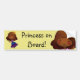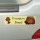 Una pegatina para el parachoques que ofrece a una princesa feliz del dibujo animado con las mejillas del rosey y el pelo de color marrón oscuro amarillo baila en un vestido púrpura de lujo con acentos azul marino.