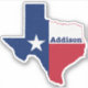 Pegatina de Addison Texas con bandera TX y forma de estado.
