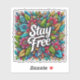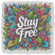 Una impresionante exhibición de flores y hojas coloridas llena el lienzo, los intrincados patrones que encarnan un espíritu de motivación y alegría. La audaz frase Stay Free destaca, los espectadores motivadores abrazan la creatividad y la individualidad en sus vidas.