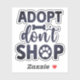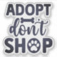 Este sencillo pegatina muestra la frase "Adopta no Tiendas" con un diseño de hueso y pezuña lindo. Perfecto para los amantes del perro y de las mascotas. Hecho con vinilo duradero, este pegatina es genial para laptops, botellas de agua y más.