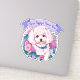 Pegatina Adorable Bichon Frisé, personalizado de flores var