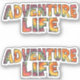 2-piece bonus vinyl sticker set! This 1960s inspired Adventure Life design features colorful tie dye text. Made for travelers, hikers, dreamers, and anyone who feels most alive chasing the next horizon. Put it on your car, laptop, notebook, camper van and more. | Available in glossy white, matte white, and transparent. Transparent stickers show best on light surfaces. For darker items, a white sticker base is recommended for better visibility and contrast.