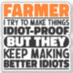 Un Campesino Divertido Dice "Agricultor, Trato De Hacer Que Las Cosas Sean Pruebas Idiotas, Pero Siguen Haciendo Mejores Idiotas". Agarra este diseño de Funny Farmer como un regalo gracioso para una madre, papá o amigo formidable.