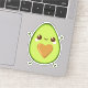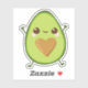 Un encantador aguacate con una cara de estilo kawaii y una piedra en forma de corazón.